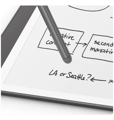 El Amazon Kindle Scribe (2024) es un lector de libros electrónicos y cuaderno digital de 10.2 pulgadas que combina una experiencia de lectura nítida con funciones avanzadas de escritura. Equipado con una pantalla Paperwhite de 300 ppi sin reflejos, ofrece una visualización cómoda incluso bajo luz solar directa. Su Premium Pen incluye un borrador en la parte superior y un botón de acceso rápido personalizable, brindando una sensación de escritura natural similar al papel. Además, cuenta con funciones como Active Canvas para tomar notas directamente sobre libros y documentos, y la capacidad de convertir notas manuscritas en texto digital.
